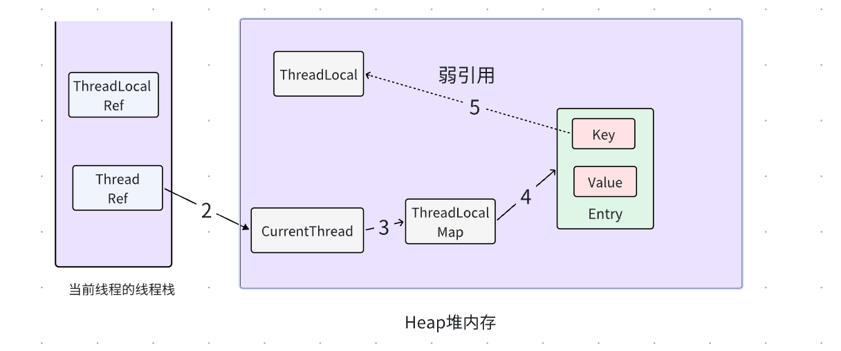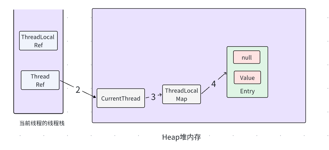 线程对象中有threadLocals 指向ThreadLocalMap对象,如图中“3”