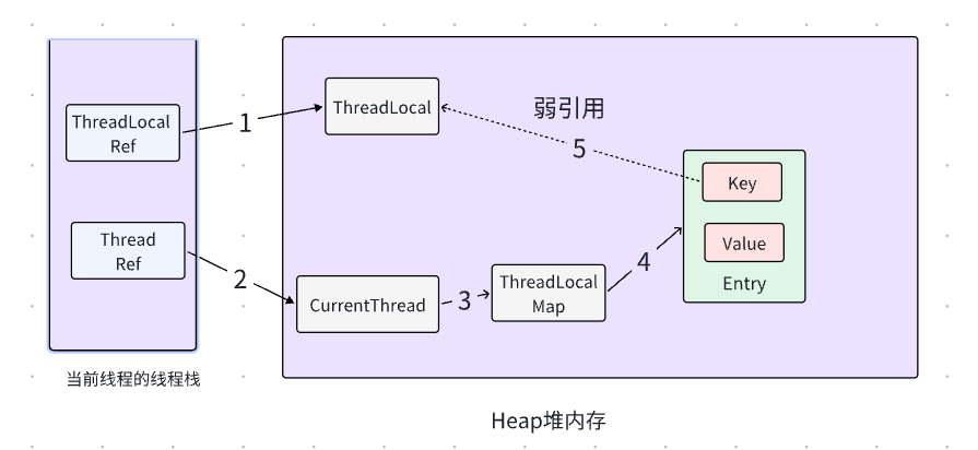 ThreadLocalMap中有指向Entry数组的引用,如图中“4”